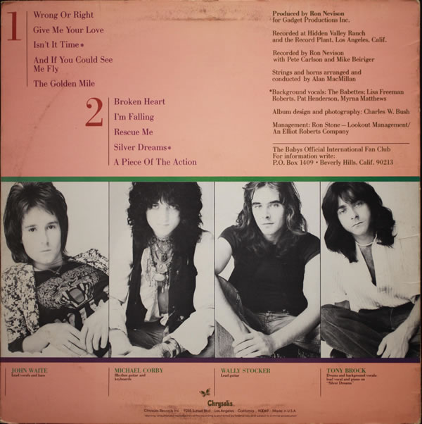 A cette époque The Babys, c’était, John Waite (Lead Vocals & Bass), Michael Corby (Rythm Guitar & Keyboards), Wally Stocker (Lead Guitar) et Tony Brock (Drums).